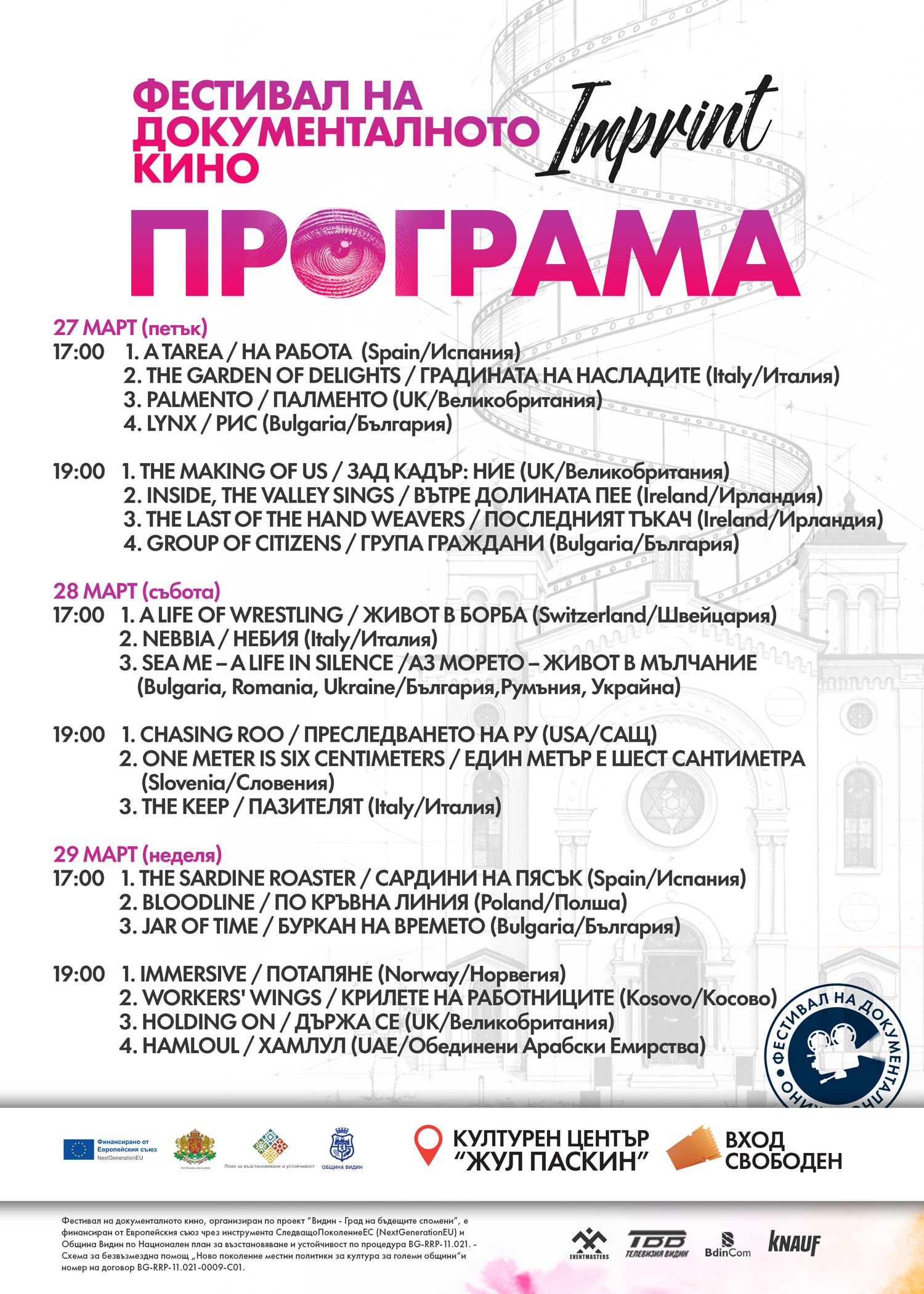 От 27 до 29 март Видин ще бъде домакин на първото издание на Фестивал на документалното кино „Imprint“ – събитие, което събира на едно място съвременно европейско и световно документално кино, автори и публика в търсене на смислен диалог.