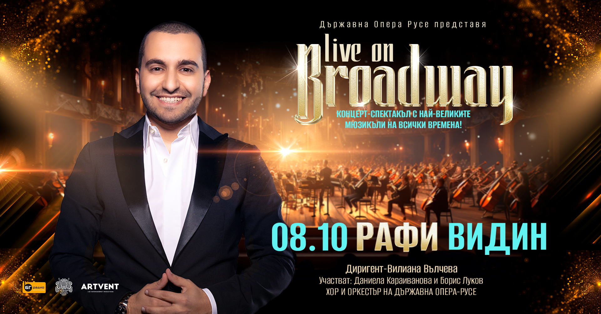 Държавна опера – Русе с гордост представя невероятния концерт-спектакъл „LIVE ON BROADWAY“ – вечер, посветена на едни от най-великите мюзикъли на всички времена. След като покори публиката в редица градове в страната, спектакълът „Live on Broadway“ се завръща с ново национално турне, което ще започне от Видин – на 8 октомври.